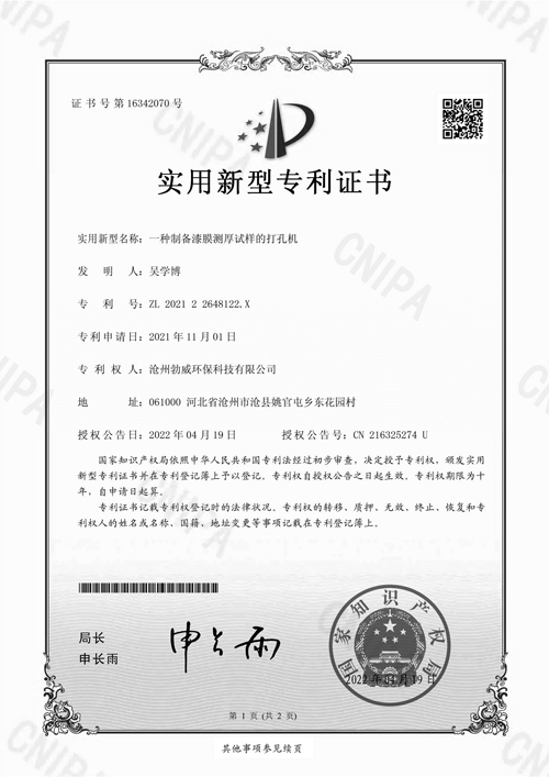 膜測厚試樣的打孔機專利