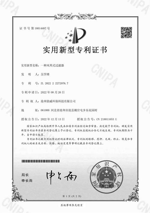 風(fēng)琴式過濾器專利